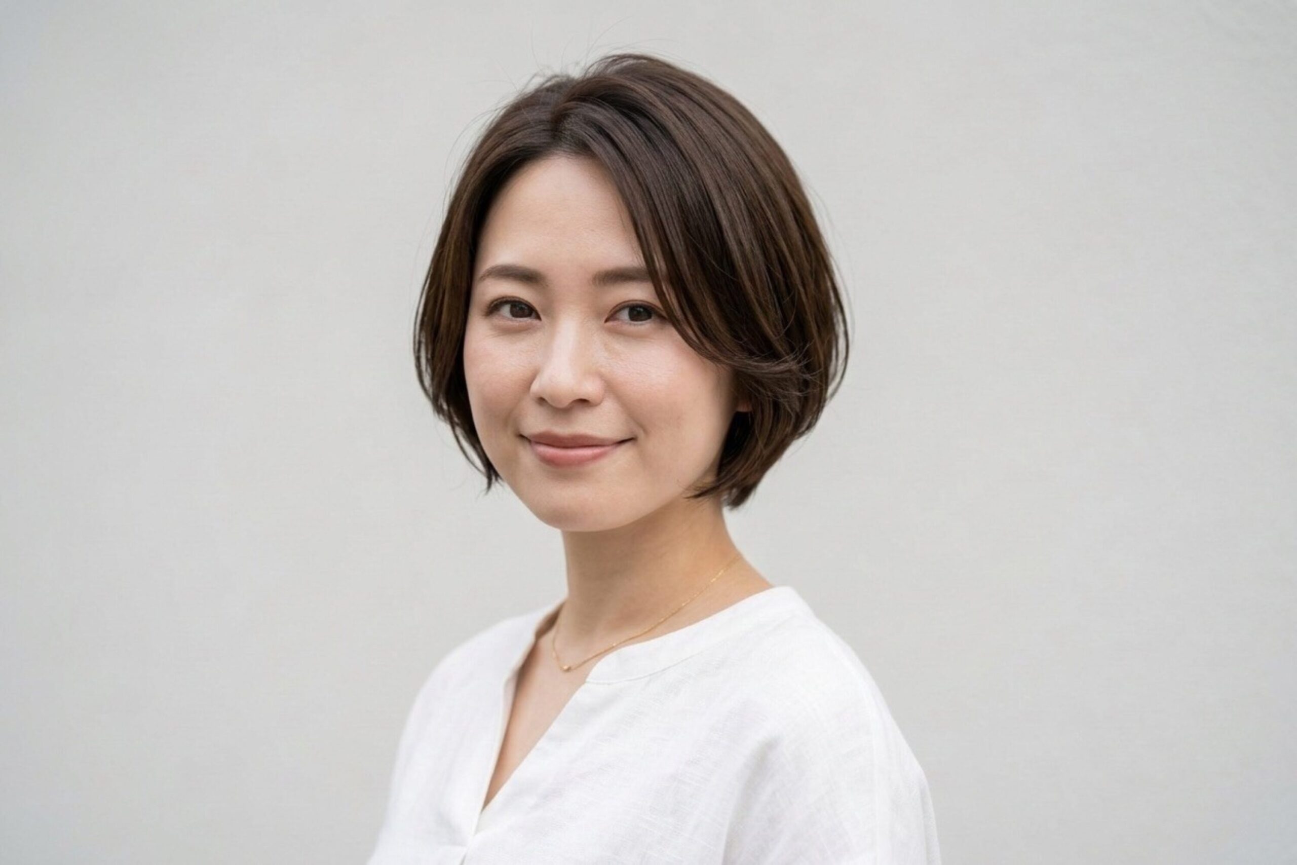 丸顔さんが小顔に見えるヘアスタイルには、共通するポイントがあります。特にショートやボブでは、ただ短くするのではなく、横に広がりすぎず、縦の印象を少し足すことが重要です。