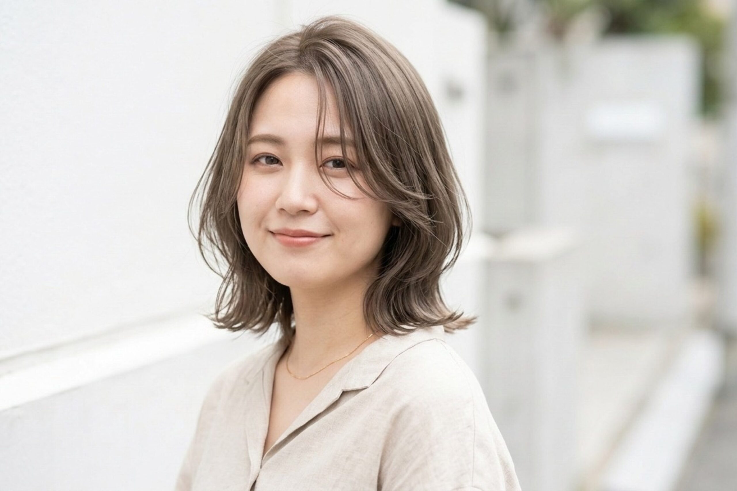 また、頬やあごまわりに髪がかかりやすいため、「輪郭を全部出したくない」という方にも安心感があります。重たくなりすぎないように毛先に少し軽さを入れると、大人っぽく自然な印象に仕上がります。